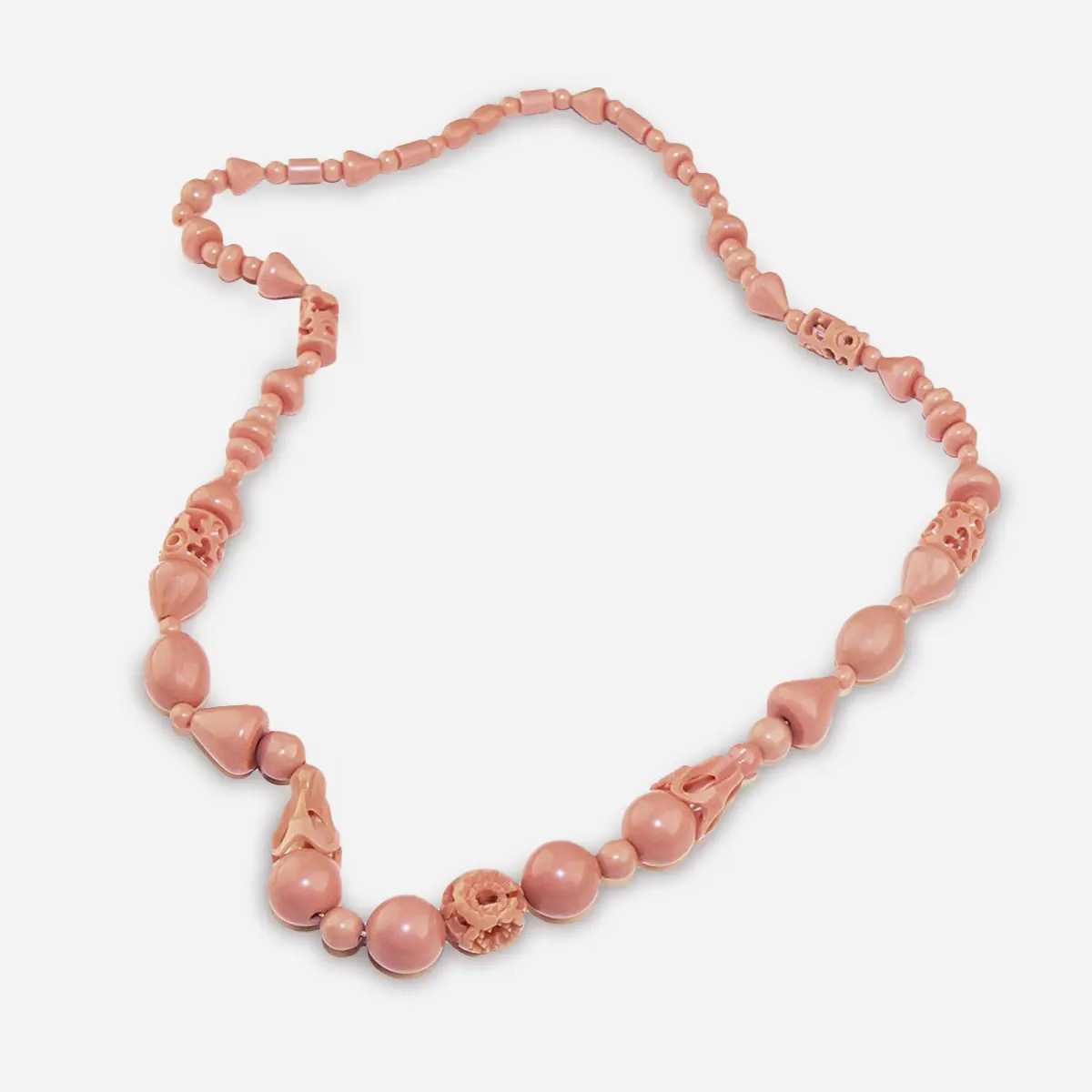 1930s Galalith Necklace | Unique Hand-carved Beads
