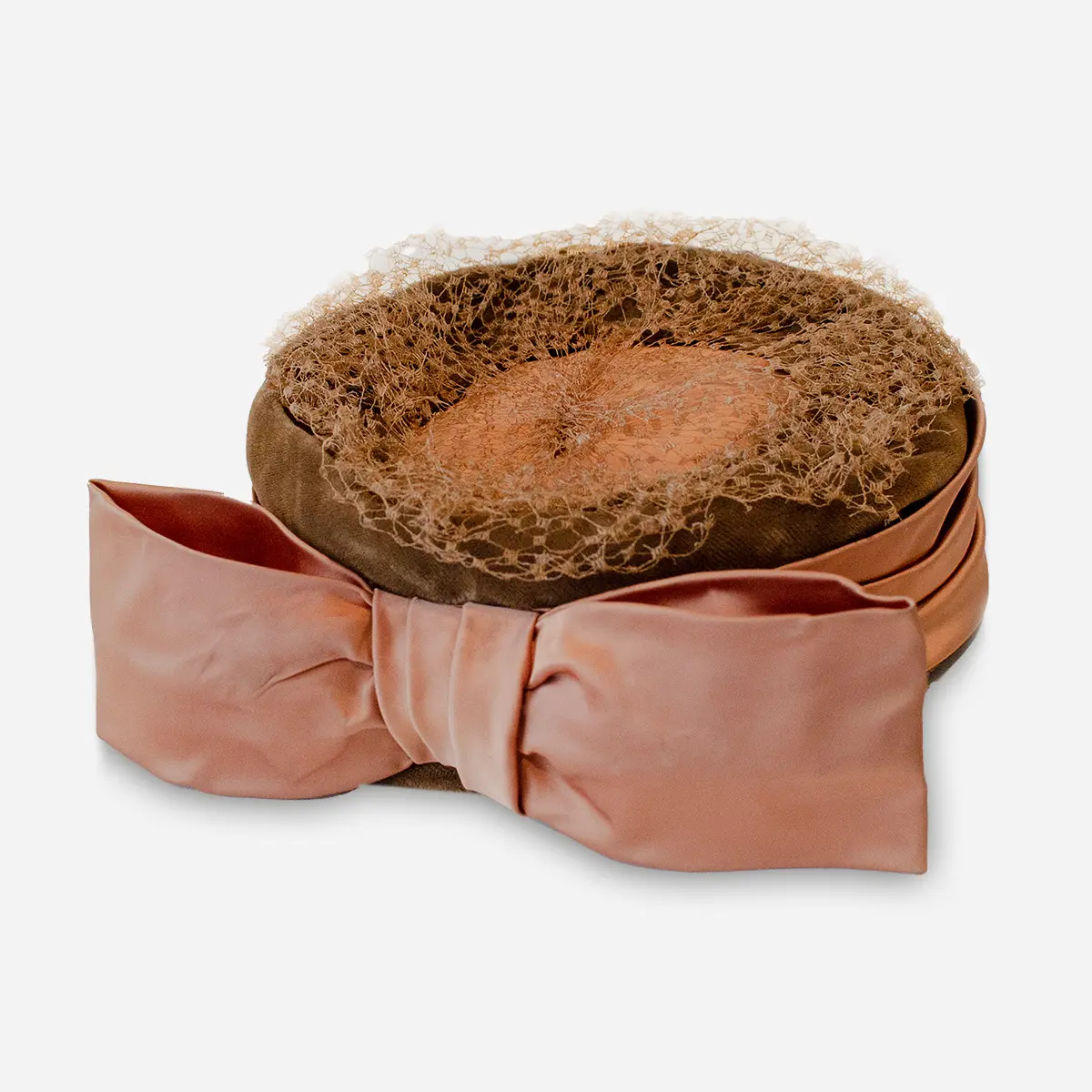 1950s Brown Pillbox Hat | Gorgeous Large Pink Bow