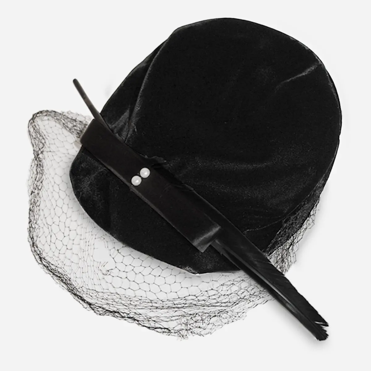 Fun 1940s black feather cocktail hat. Who doesn’t love poms?1940s Cocktail Hat DetailsBack felt vintage hat with a side pom of feathers.Black beaded detailing top where the feathers meet the hat body.The hat body has two tiers in the front.Fun for a cocktail or costume party.NOT SHIPPABLE TO ITALY due to Italian customs prohibition. VINTAGE CONDITION SHOP MORE VINTAGE HATS Shop more Spring & Summer Hats HOW TO MEASURE YOUR HAT SIZE HOW TO FIND YOUR HAT SIZEPull a fabric tape measure or length of string around your head just slightly above the ear, across the mid-forehead, completely circling your head.Hold the tape firmly, but not too tightly. You are measuring your head exactly where the hat will sit in either inches or centimeters.If your measurement falls between sizes, choose the next largest size.Then buy a fabulous vintage hat from MadgeSEE OUR HAT SIZING CHART SHIPPING & RETURNS We ship items within five business days. Occasionally, there might be shipping delays. If this occurs, we will promptly notify you.Clothing and accessories ship via USPS Priority Mail, UPS, or FedEx, selecting the best option based on price and insurance. Jewelry ships either First Class or Priority. For overseas orders, we use International First Class. Please refer to our Shipping Information for detailed rates.International buyers are responsible for all customs duties. PLEASE NOTE: Starting July 1, 2021, EU members will incur VAT taxes based on the specific country’s tax rates during importation.We know you may be wary about buying vintage items. If so, we do offer returns. If you receive vintage pieces and are dissatisfied or if the item doesn’t fit, please inform Madge of your return request within 10 days of receiving the merchandise. You must return the items within 30 days after notifying us.You can find our complete Return Policy here. If you have further questions after reading, please call or text (404) 850-1757. SIGN UP FOR SPECIALS & DISCOUNTS Photos copyright © 2025 Madge’s Hatbox Vintage. Join our Facebook group, Mad About Vintage, for weekly specials.
